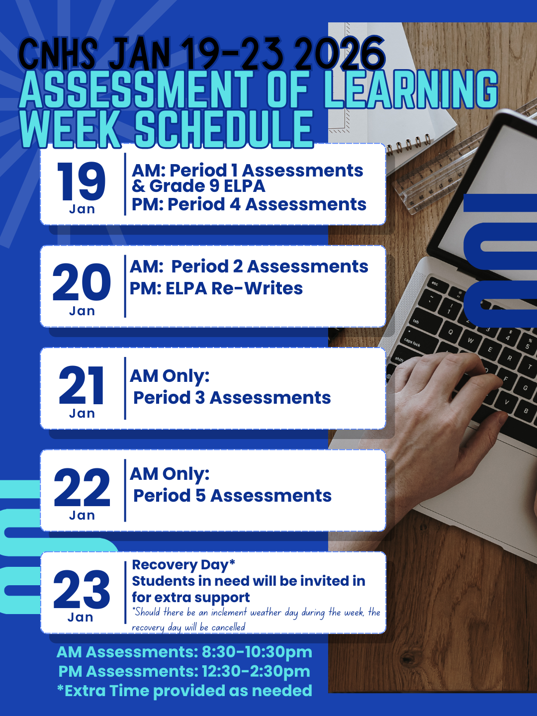 January 19-23 Assessment of Learning Schedule